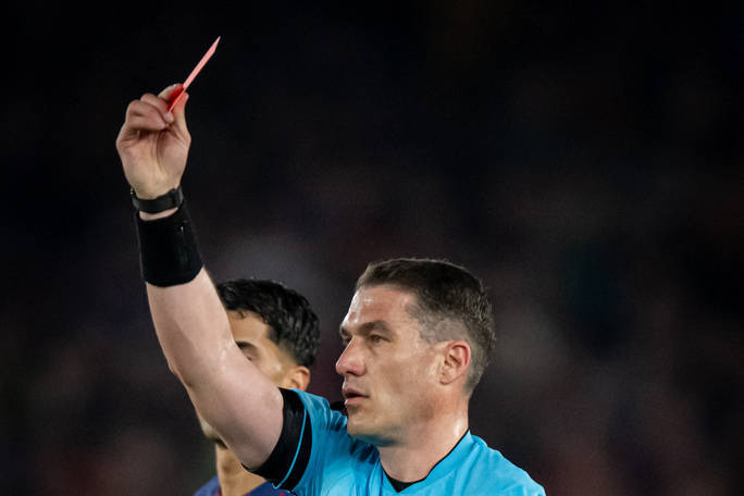 巴萨后卫库巴西染红引争议,裁判专家:判罚正确但不想罚下他